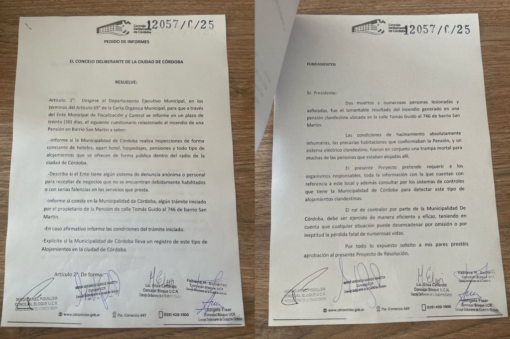El proyecto presentado en el Concejo busca determinar qué controles lleva adelante la Municipalidad de Córdoba en materia de hospedaje informal y pensiones clandestinos. En el pedido de informes, se exige que el Ente Municipal de Fiscalización y Control responda en un plazo de 30 días sobre diversos puntos clave: